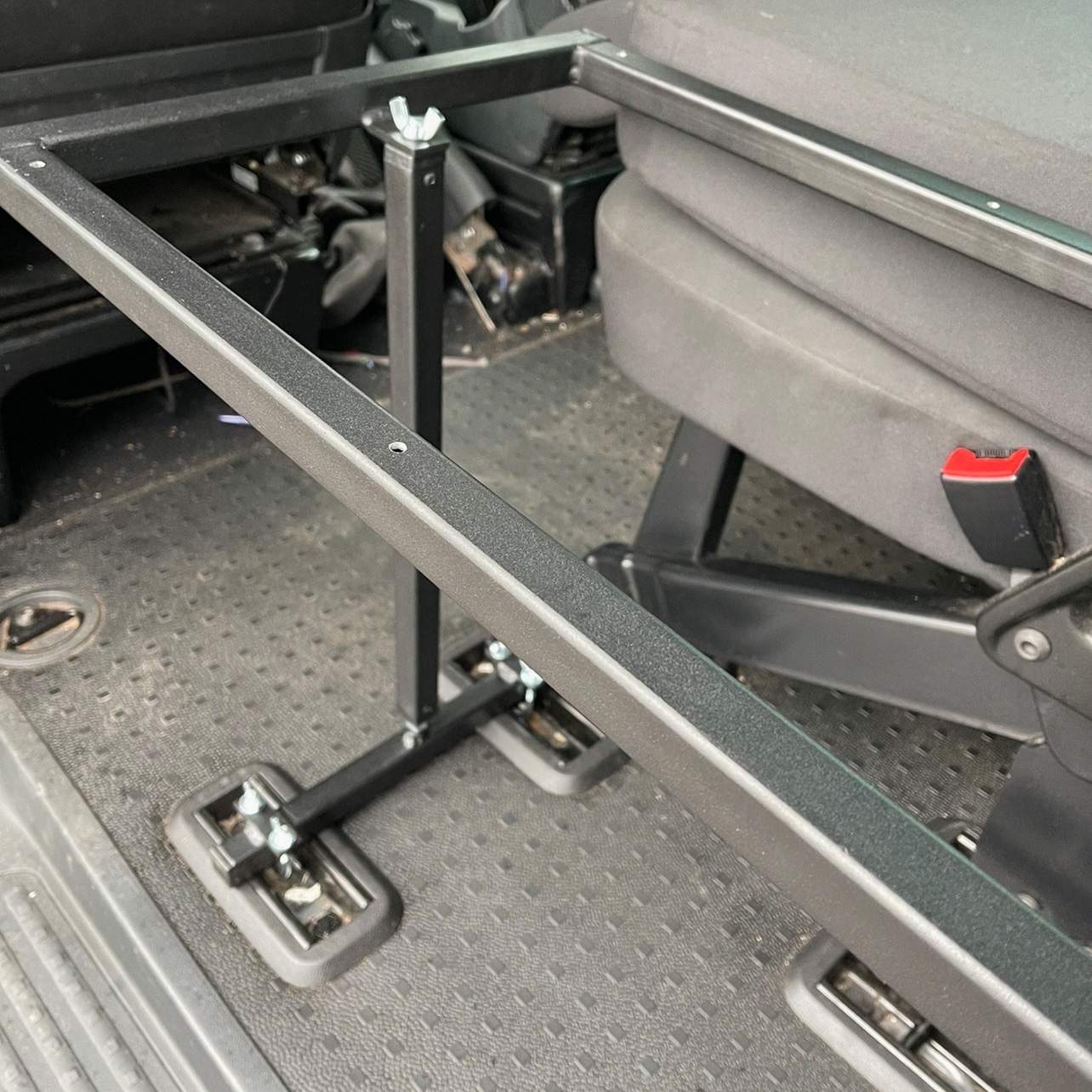 Installing the single-seat infill is hassle-free, requiring no specialised tools, only the bolts provided in the kit. There’s no need for any modifications to your VW Kombi Transporter, as the infill seamlessly utilises existing attachment points within the van. This ensures stability even while your van is in motion, providing peace of mind during your adventures.